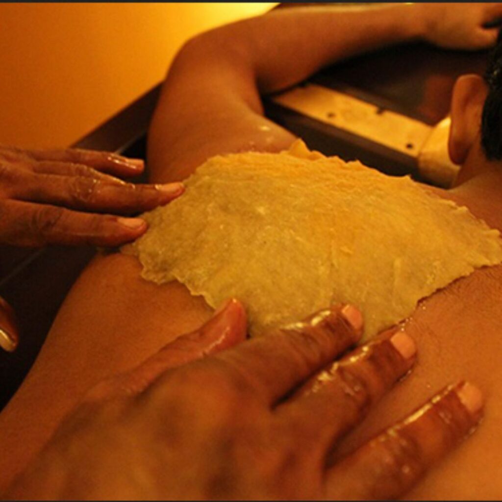 A combination of warm oil massage and herbal exfoliation using powders or pastes that helps relax muscles, improve circulation, and support detoxification. These therapies are especially beneficial for reducing fatigue and promoting a deep sense of relaxation.