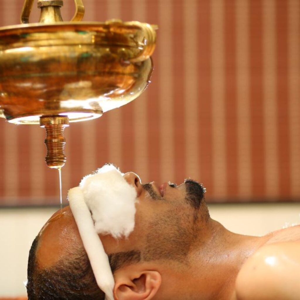 This therapy involves a gentle, continuous flow of medicated oil on the forehead along with other head-focused treatments. It is highly effective in calming the mind, reducing stress, improving sleep quality, and supporting mental clarity.